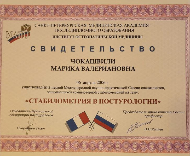 ჩემი პირადი გამოცდილება 1. ჩემმა შვილმა საუბარი დაიწყო. 2. დედაჩემმა შეძლო მთელი ზაფხული სიარული ზურგის არეში ტკივილის გარეშე. 3. ჩემი კისერი პირველივე პროცედურის მერე გამოჯანმრთელდა მედიკამენტებისა და ინექციების გარეშე. ეს მშვენიერი, კეთილი, პროფესიონალი ადამიანი, რომელსაც განათლება მიღებული აქვს სხვა ქვეყნებში - მშვენიერი მარი ჩოკაშვილია, ღმერთა მისცეს ჯანმრთელობა!