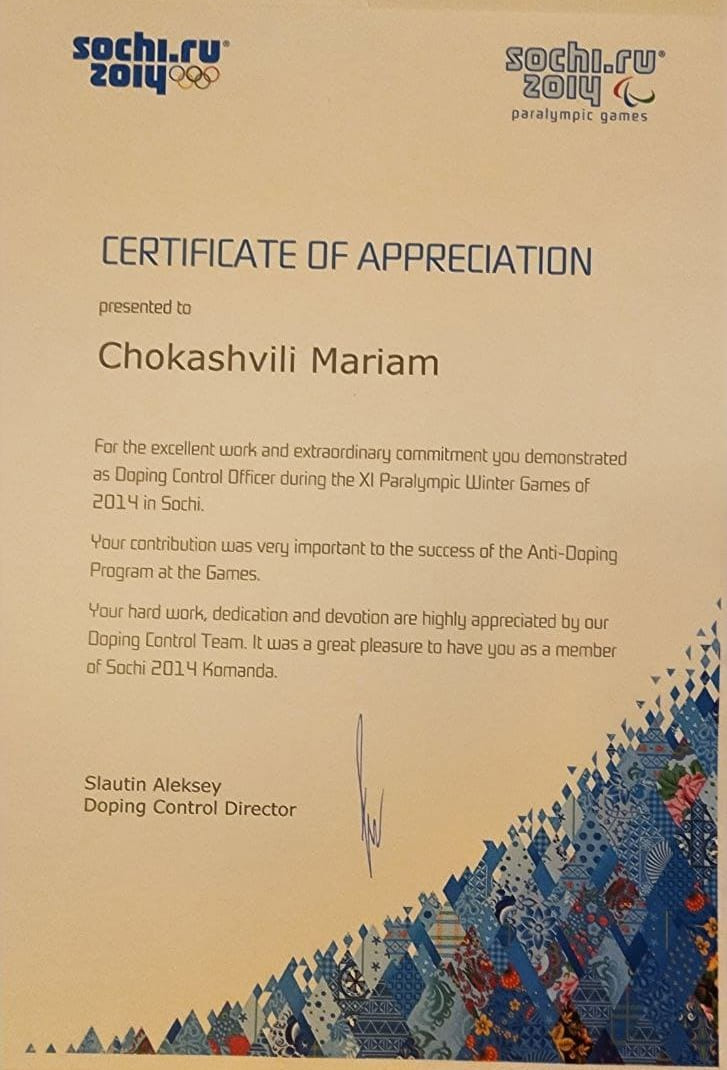 საქართველოს ოსტეოპათთა ასოციაციის დამფუძვნებელი და პრეზიდენტი. ევროპის ექიმი ოსტეოპათი. ლიცენზირებული ექიმი - ბავშვთ ნევროლოგი, ლიცენზირებული ექიმი- რეაბილიტოლოგი და ოსტეოპათი, საქართველოს ანტი-დოპინგის სააგანტოს თანამშრომელი და დოპინგ ოფიცერი საერთაშორისო დონის.